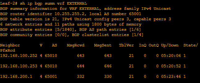So now we can confirm our eBGP neighborships firstly in the Nexus Leafs.