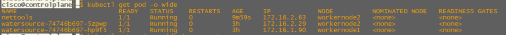 Finally we can see that from our nettools pod on 172.16.2.63 can ping both our watersource pods on 172.16.2.29 and 172.16.1.90.