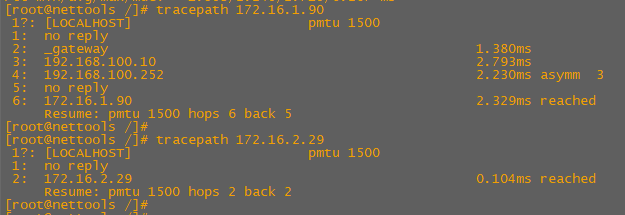 We can also see the difference in tracepaths between the pods deployed on workernode2 together and the pod deployed separately on workernode1
